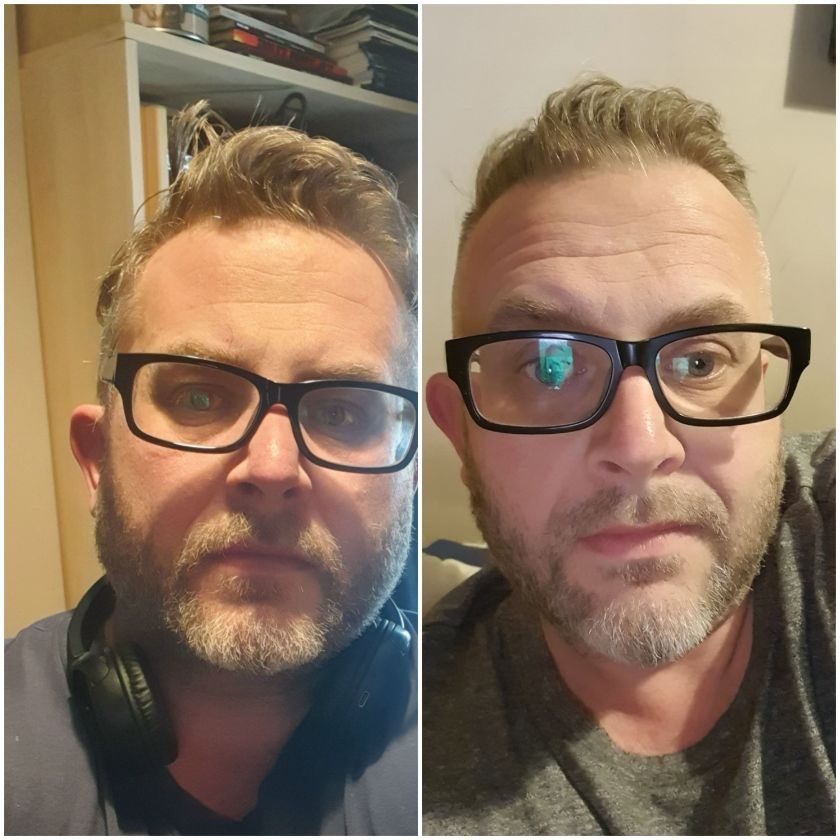 Anyway, so this is 7 months apart and about 50lbs down. Mostly though just looks like I shaved 🙂
