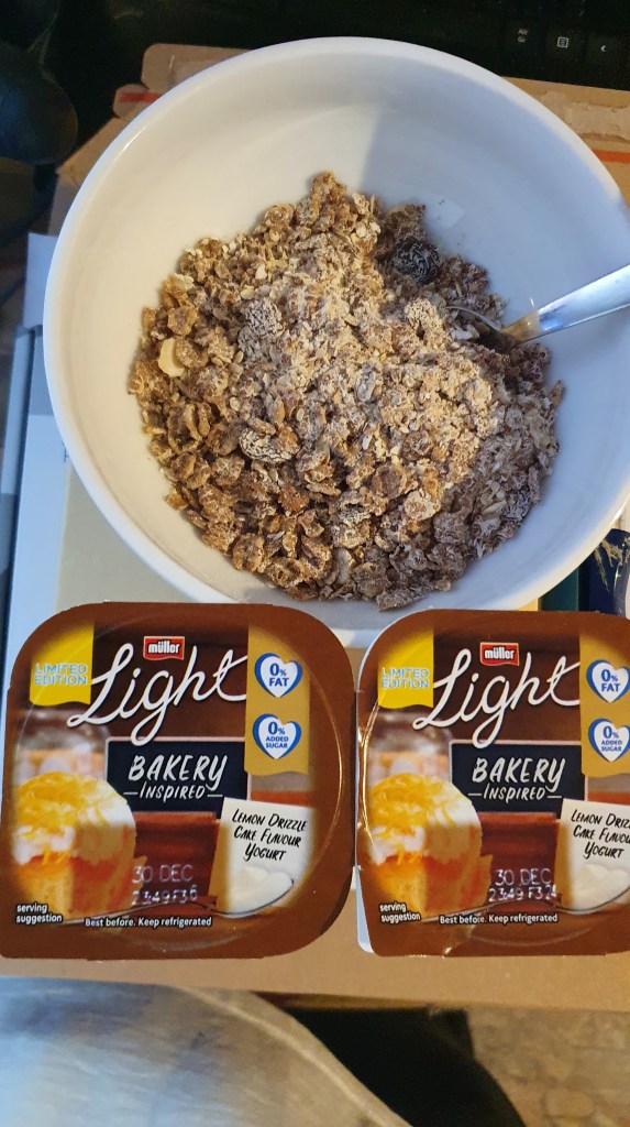 I have 2 go-to’s most days that help me with a disciplined start to what I eat. Muller light yoghurt with no sugar muesli is my preferred way to start the day, whatever time I start eating, and chocolate rice cakes are my snack of choice. I did eat 10 one day though so I am not sure that’s quite the balanced diet I am going for. They’re just so damned good though.