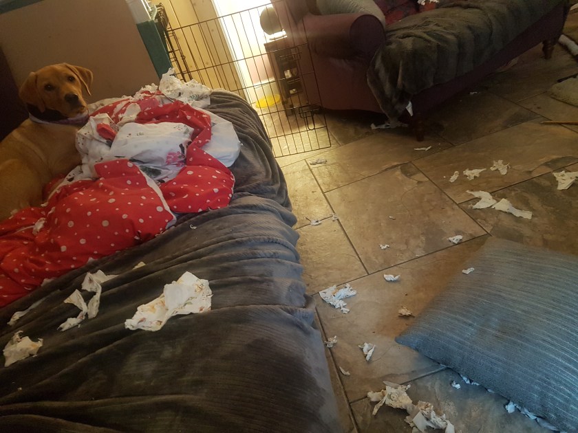 (As you can see above, Theo is a huge fan of chewing loo rolls and yesterday I neglected to close the bathroom door and in just a few minutes he had shredded a couple he had got his pesky paws on.)