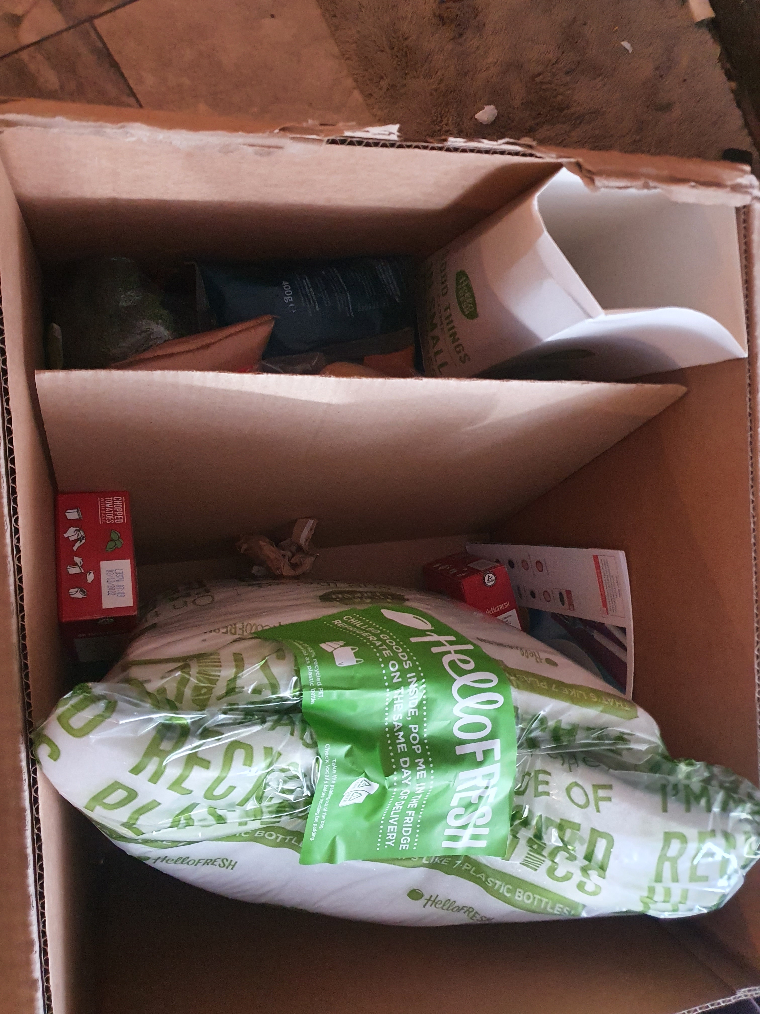 If you haven’t seen Hello Fresh before it is a service where they send you just enough food to make a certain number of meals each week (including recipe cards). You pick the meals by a certain day, from a selection of about thirty on an app, and a few days later a box arrives. Seems simple really.