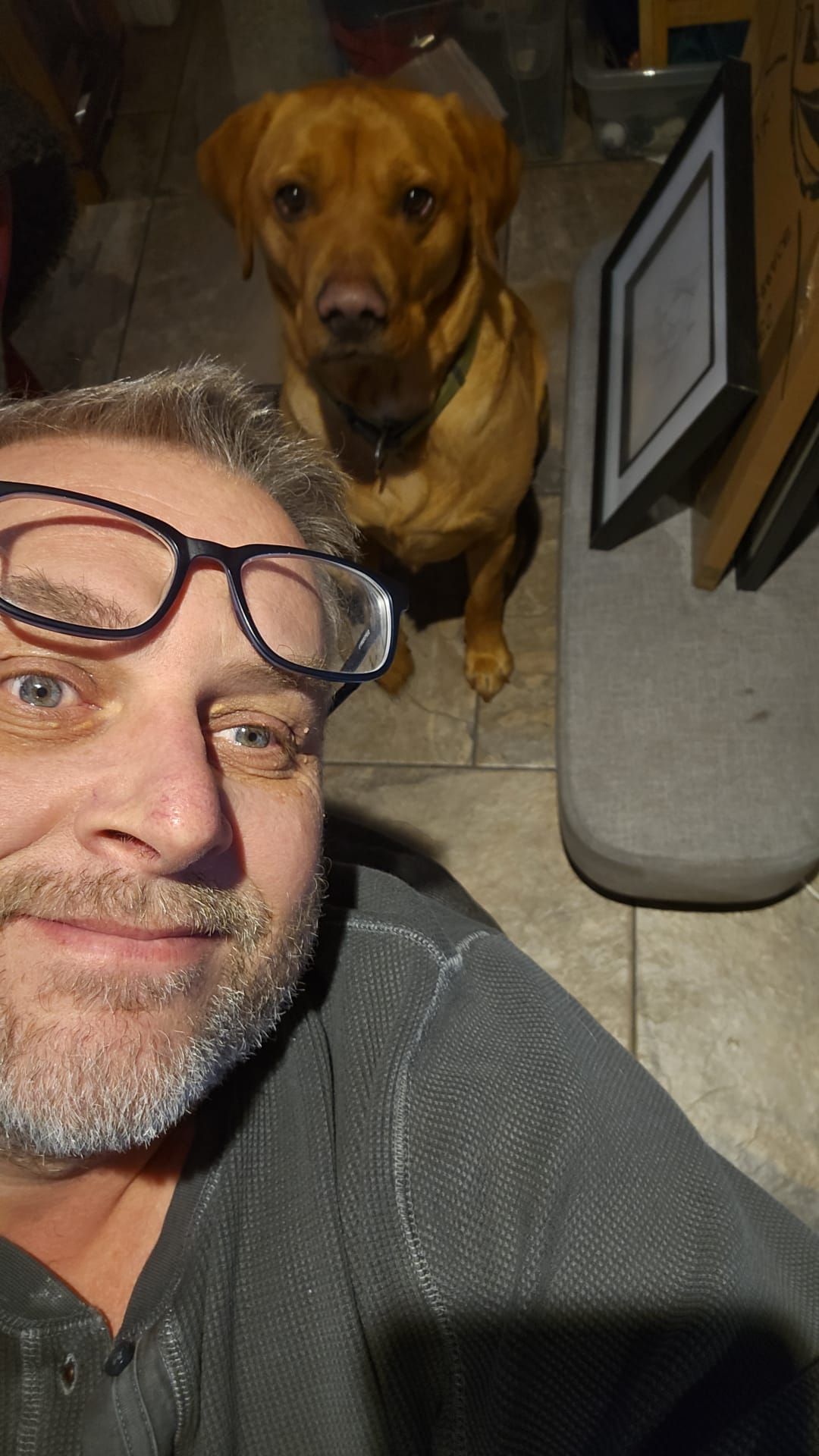 A hot shower with the dog